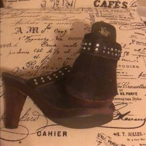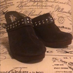 Very Volatile Brown Suede Clogs w/diamonds. Never worn.