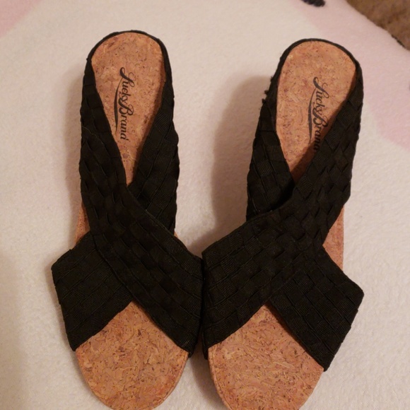 Cute Lucky brand corked wedged black sandles. Great condition, worn twice.