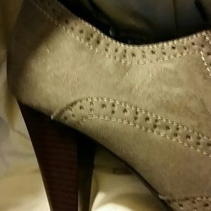 Grey suade heels are 4 inches