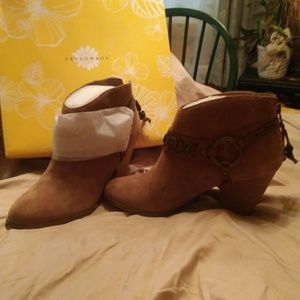 Brand new suede booties with button details metal ring with brads on side. Zippered back with pull detail with metal ball