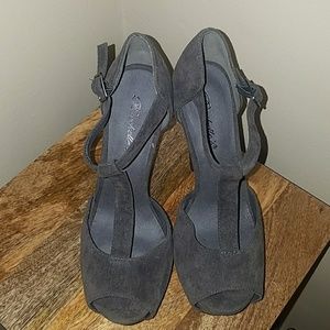 Charcoal gray peekaboo toe sandals never worn no box