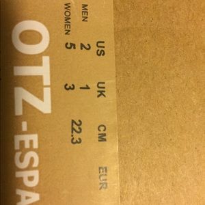 Eur size 35. Comfy canvas/linen, cork insole shoe . Excellent quality and never worn . Perfect for comfort and funky fashion