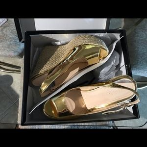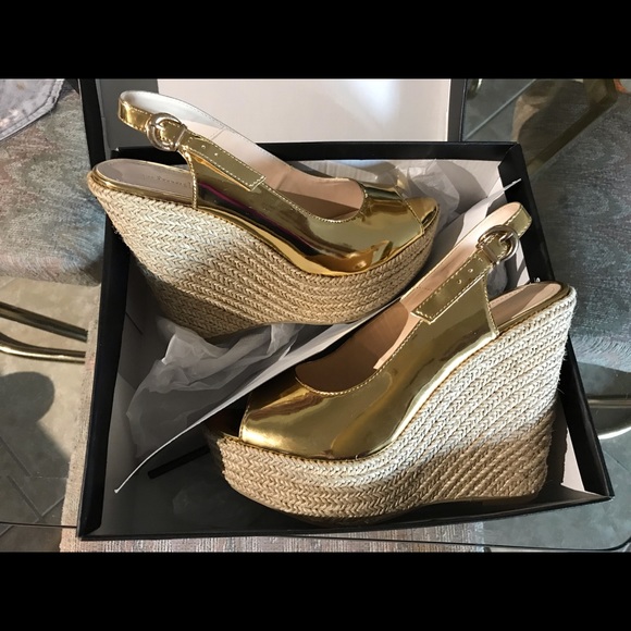 Gold Prima Donna wedge heels with heel strap. Lightly used but clean and free of scuff marks/ damage. Size 38.
