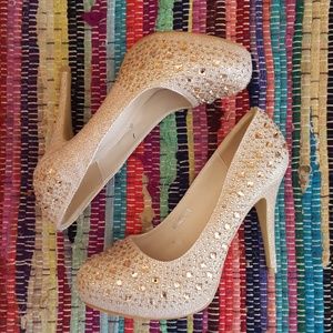 Beautiful gold jeweled high heel. I wear a size 9 and these are marked as a 10 but fit me, so please note they run small.