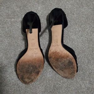 Womens size 9/40 black Aldo dress shoes. Worn 1 time for an outdoor wedding hence the leather staining on the bottom. Rest of shoe is in very good shape.