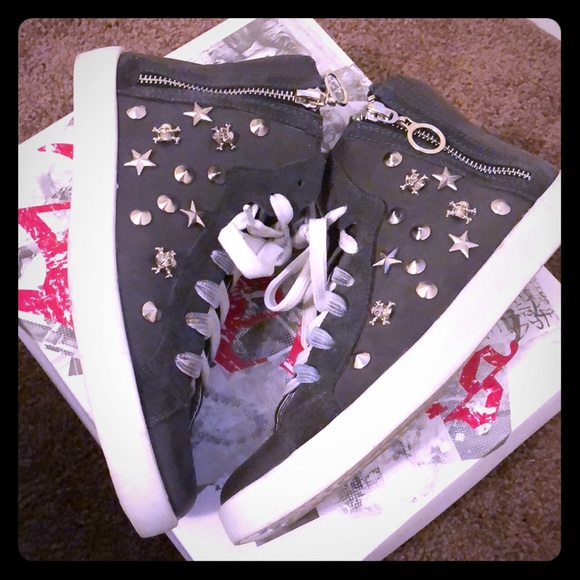 Do you like your shoes blinged out?! If so, these are perfect for you! Cute stars, studs, and skulls with zipper on the side! Worn Once. Cute & Comfortable!