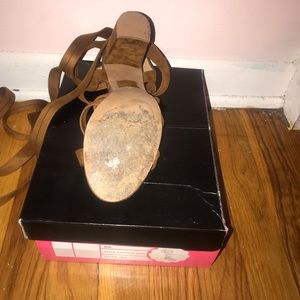 These sandals as súper gently use I only wear if like twice it still have their box, the material is like suede and the color is great to combine súper confortable