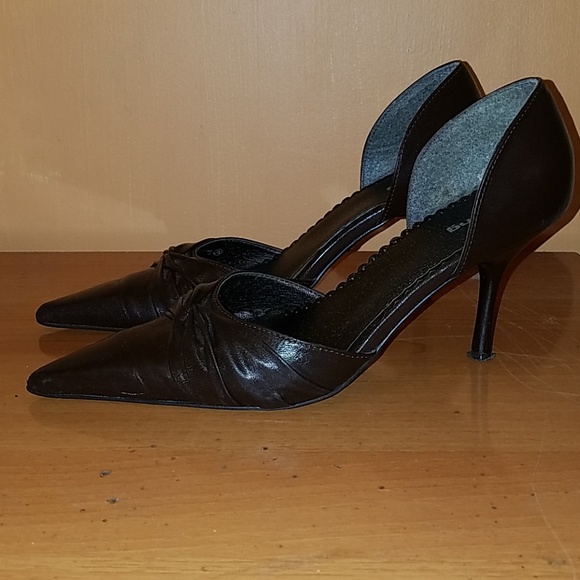 Brown leather shoes, small scuff on the tip and heel of shoe as seen on the pictures. Gently worn