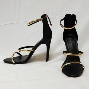 New, gorgeous Bebe & Co. gold strap heels. Used in photo shoot, not even walked in.