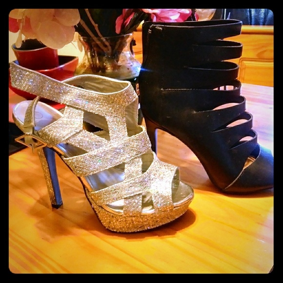 Silver with diamonds on them...all black slitted all the way up