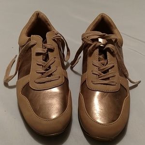 These are cute shoes they are a tan-ish pink that can be worn anywhere. They are super cute. They have been used but they are in good condition.