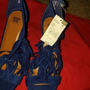 Blue Route 66 shoes new with tag,purple leopard wear once but in excellent condition I'm selling both for 38 both are size 6.