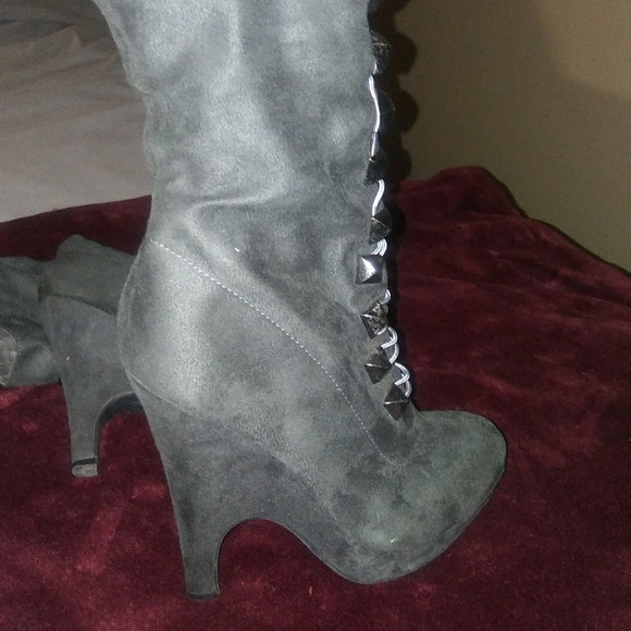 Gray Mid-Calve Boots