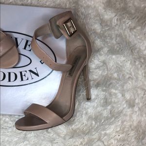 Steve Madden ankle strap nude heels with gold buckle .Have the original box.