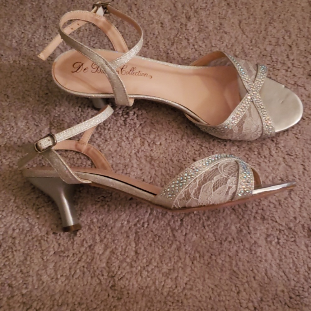 Small heels. Worn once for prom 4 years ago. Perfect size for dating a short mf. Last pic shows small dent which is just from storing under my more important and larger heels. Open to offers. Tbh just want them gone so I can make room for more heels :)