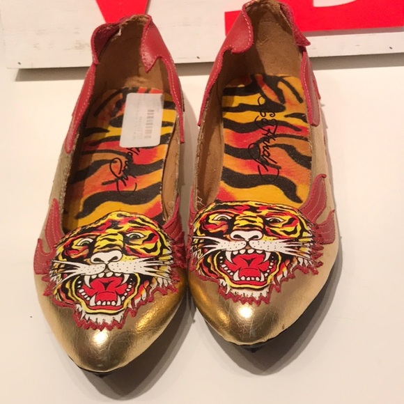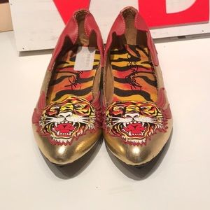 Gold And Red leather flats