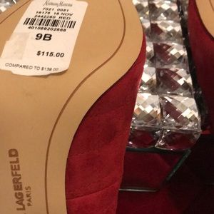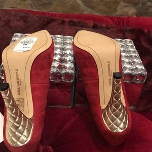 Red and gold suede heels NWB 4 inch heel size 9 Karl Lagerfeld Paris from Neiman Marcus