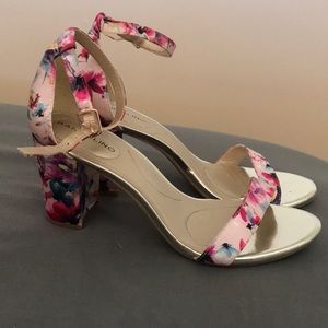 Floral block heel pump