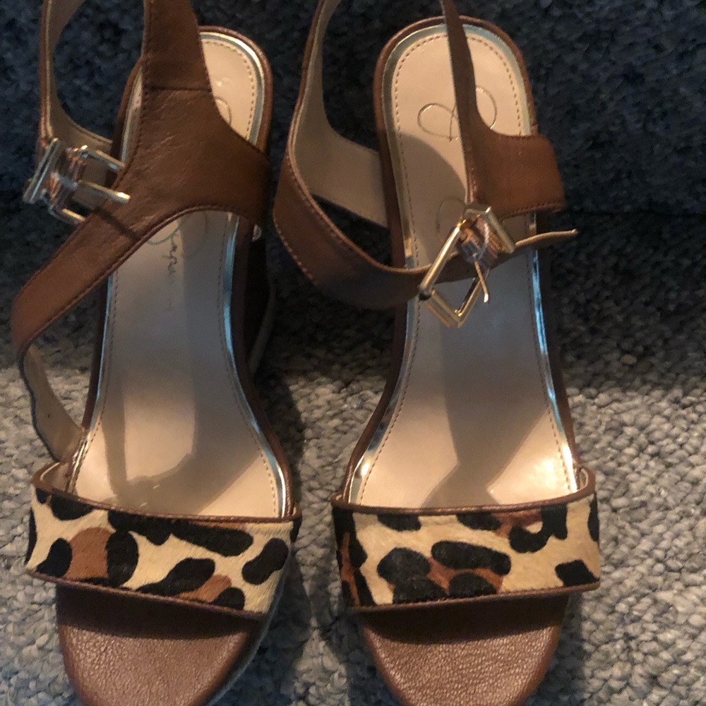 Jessica Simpson Leopard print wedges, size 8, worn once, Non smoking home!