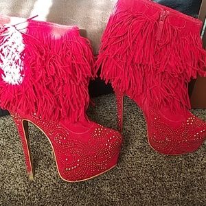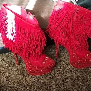 Alba high heeled shoes only whore once. They are red with gold rhinestones all over! 💃👠
