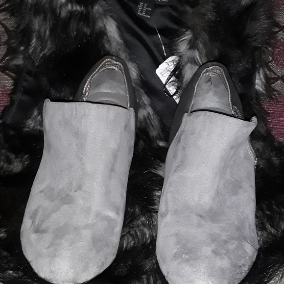 Gray high heel two tone light and dark suede short cut boot shoes with extra comfort new condition