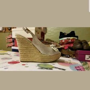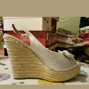 Wild Diva Silver Sparkle Espadrilles GUC Worn a couple of times. Pics included of all sides of shoes.