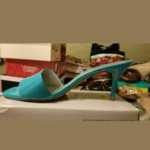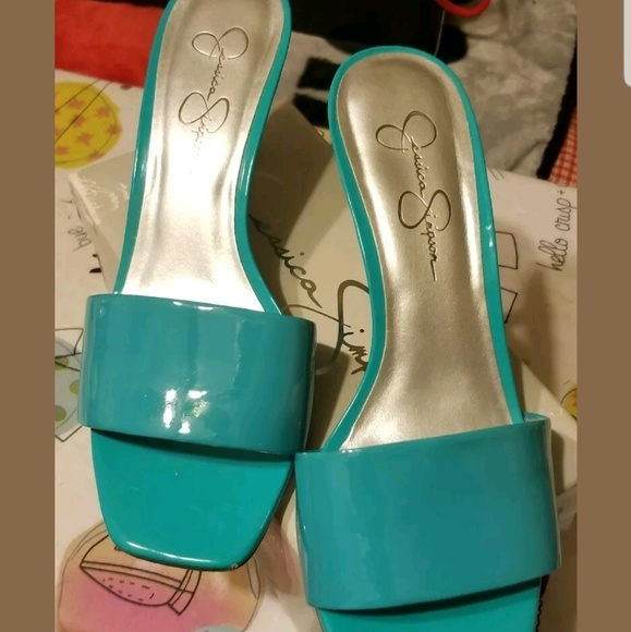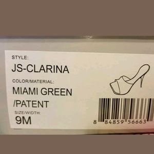 Jessica Simpson Clarina Miami Green Patent Mules Size 9 EUC One small scuff on front of left shoe (shown in pics)