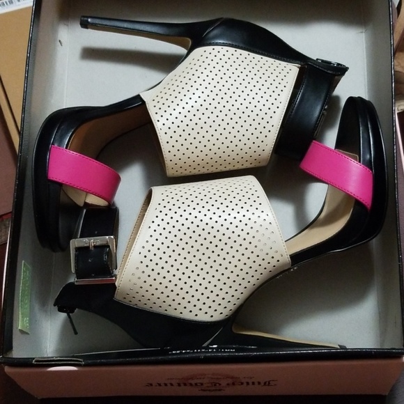 Never worn, some minor scuffs on the bottom of heels from possible in store try on(s).