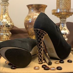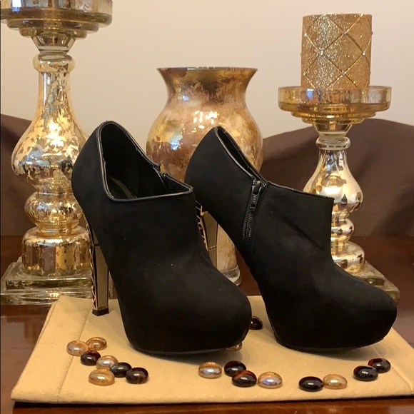Call it Spring Swede Booties with Gold Trimmed heel. Minimal wear and tear. Warn a few times. Comfortable and stylish.