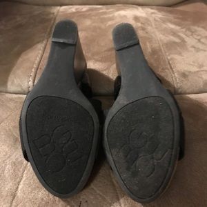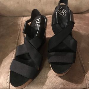 Black BG-Tempa wedge shoes. Elastic/Nubuck slip ons with no buckle. Good condition except slight scuff on wedge as indicated in picture. Runs slightly narrow.