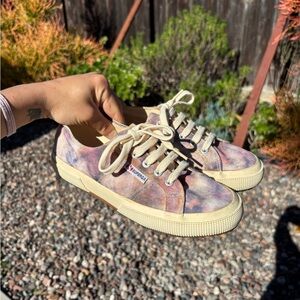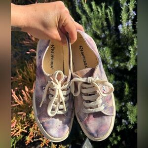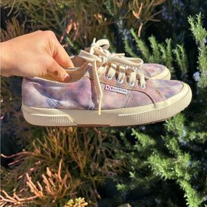 Pastel tie dye shoes sneakers superga Italian converse these were custom made and not sold in stores so they are one of a kind rare and no one has them tye dye sneakers kawaii boho lavender rainbow cotton candy unicorn chunky shoes platforms creepers puma Fenty Rihanna summer girly hipster fairycore rave