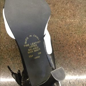 Black and white shoes made from good quality leather . Brand new. Never worn. Geek is 4” Great to match your black & white wardrobe