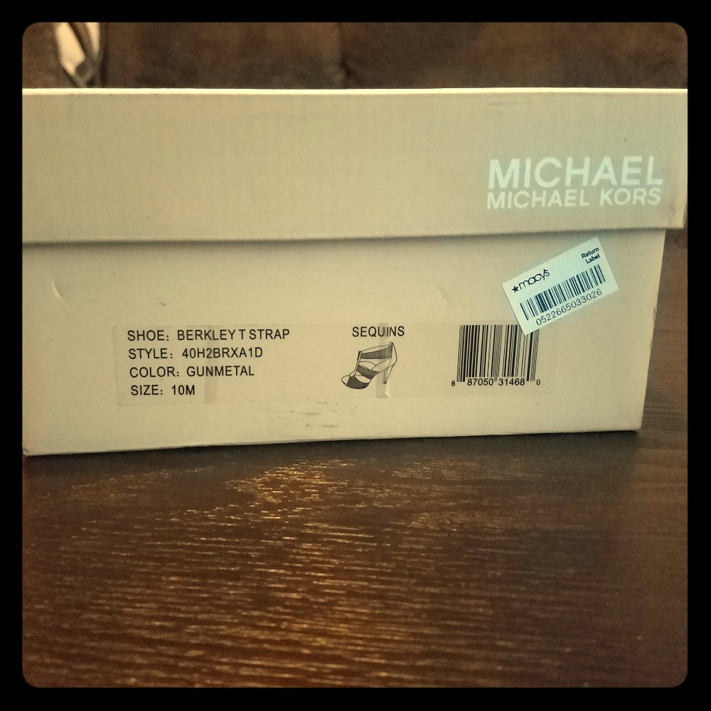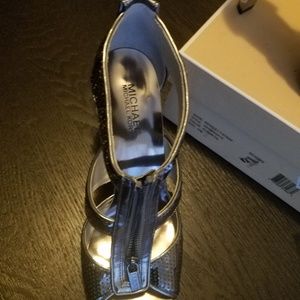 Sandal type Michael Kors heels, 4in, never worn out/ only tried on, sequins detail, in original box