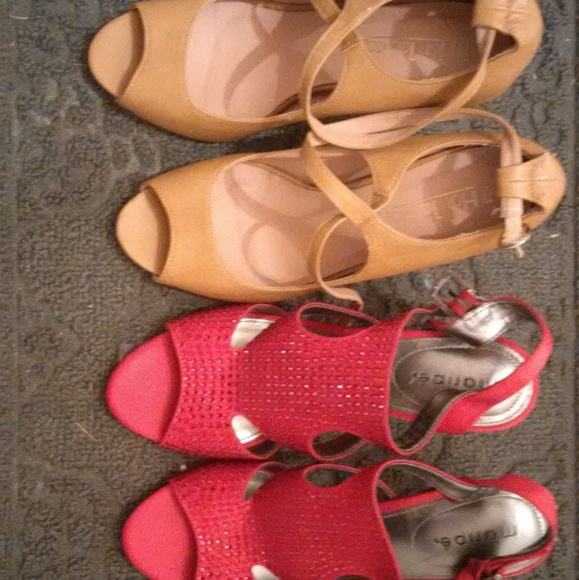The reds ones were used as prom shoes and they are 50$ and the tan ones are 25$.