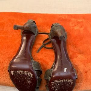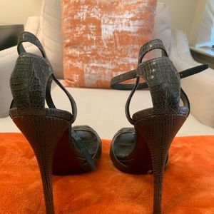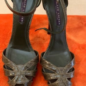 Ralph Lauren Purple Label Dressy sandals. Dark green lizard skin peep toe sandals. 4.5” heels in great condition. These run narrow.