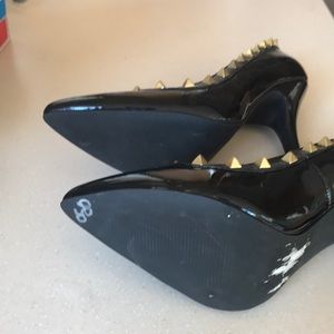 Black (faux) patten leather with gold studs. New-