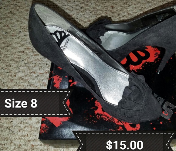 Black suede high heel shoe never worn. NIB