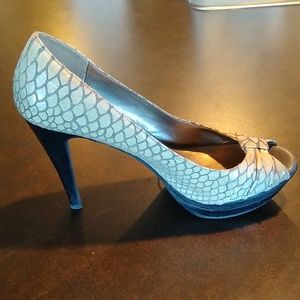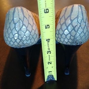 Faux snake skin high heels. Some normal wear and marks on heels.