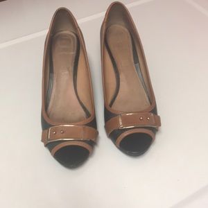 Black and brown wedges. All defects are shown on the photos. Good condition.
