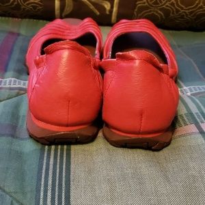 New open toe, red leather Skechers
