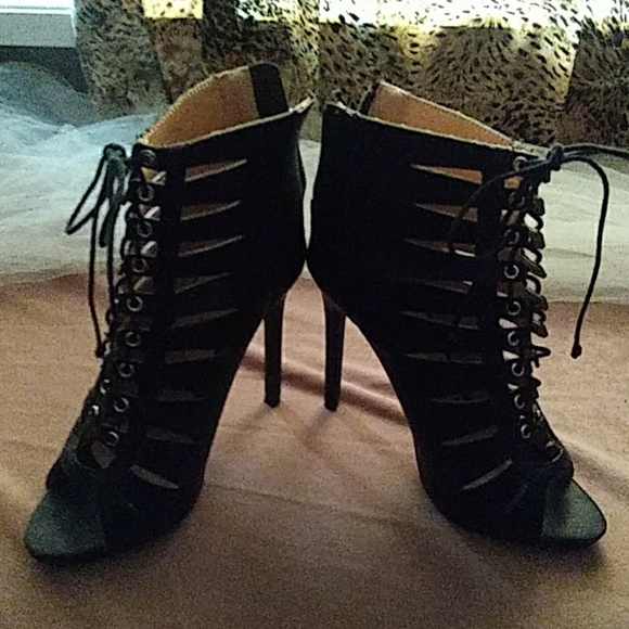 Sexy 6 inch lace up ankle boots...zippers in the back..very stylish! Worn once
