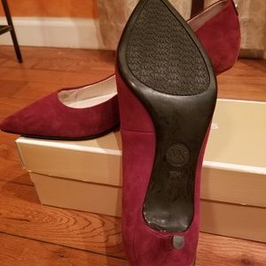 Kitten heel suede pumps. Pointy toe/2 1/2 inch heel. Worn once. Burgandy/Wine