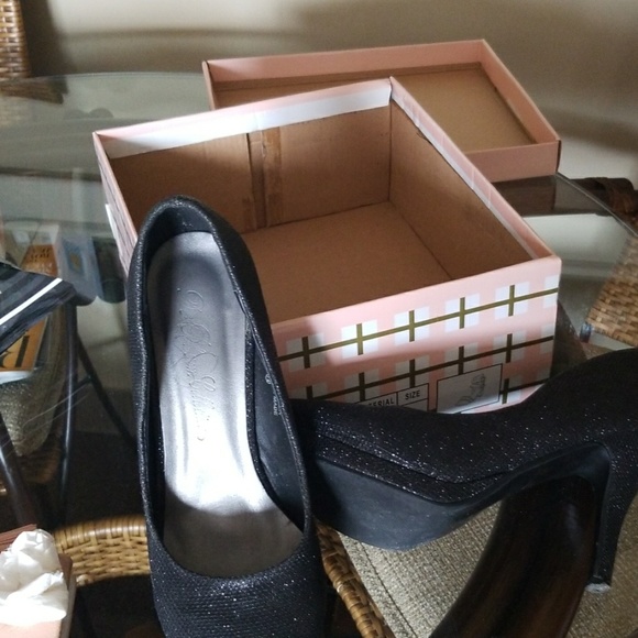 Black shimmer heel one of the heel tap came off they need new taps but other than that great condition