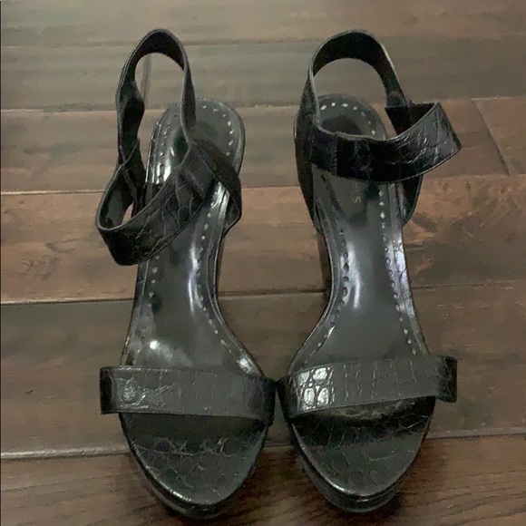 Black alligator imprint front strap and ankle strap wedges. Worn half a dozen times, if that.