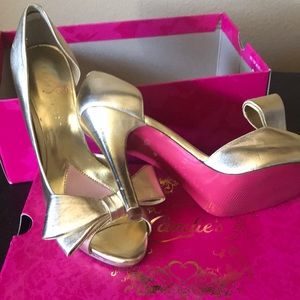 Gold Paris Hilton with pink accent 4 inch heel Truly a beautiful shoe