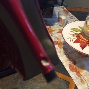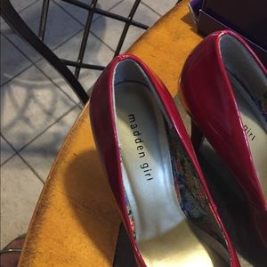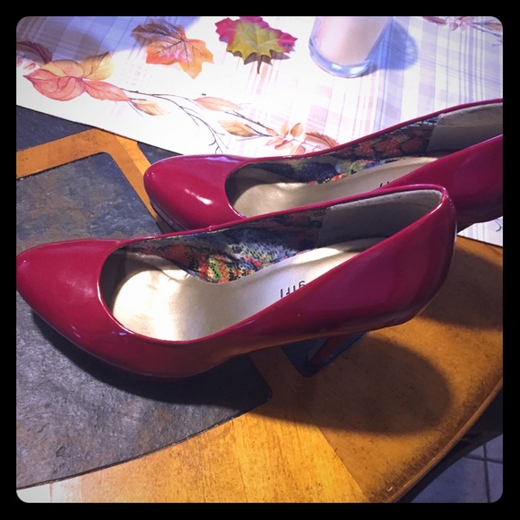 Red high heel shoes . Picture #4 show smal damage on the heel .