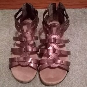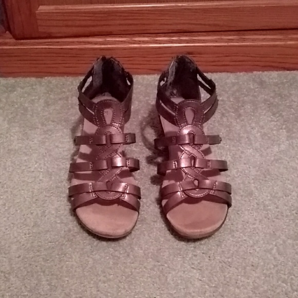 1' heel ankle causal sandals. Slightly worn,but in very good condition.