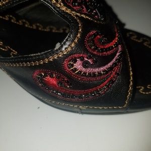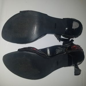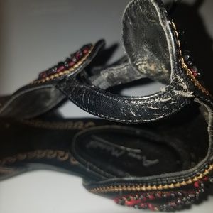 Gently loved, beaded, black sandals. Flaws pictured but still a good looking shoe.