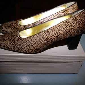 Animal print calf skin shoe. 2 1/2 inch heel. Worn once.