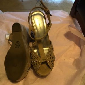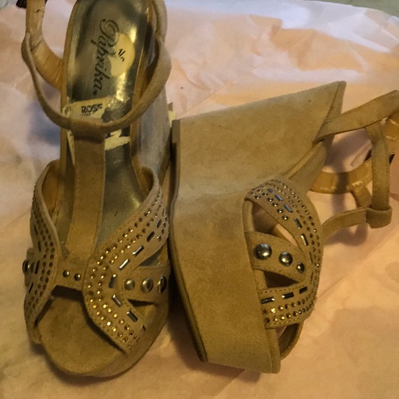 Wedges tan suede gold silver studs